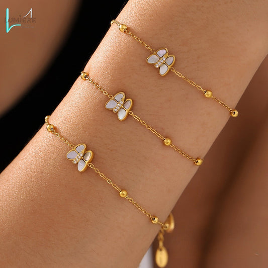 Zircon Titanium Steel 18k Gold Butterfly Ball Bracelet