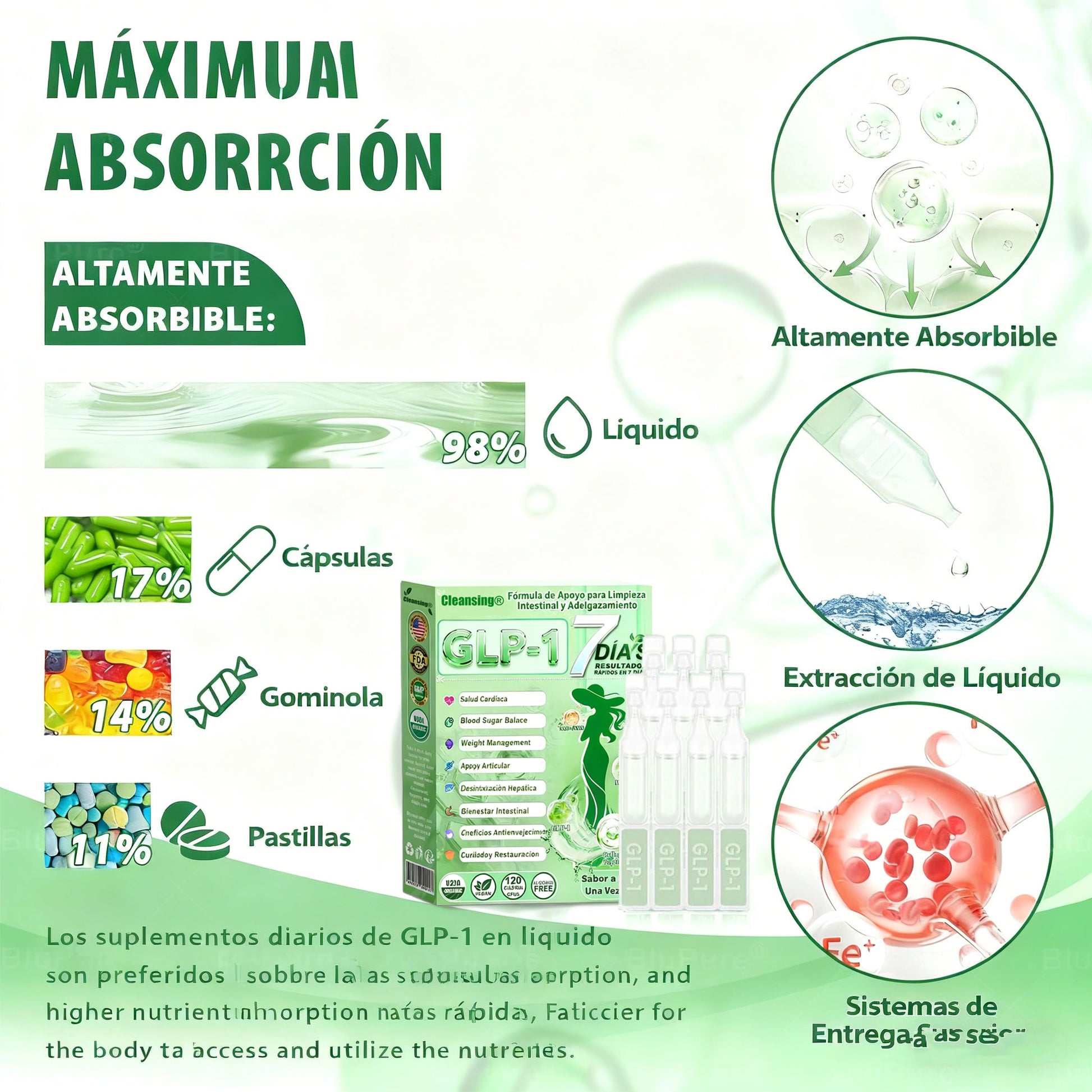 Cleansingยฎ GLP-1 ๐‘ฎ๐’–๐’• ๐‘ช๐’๐’†๐’‚๐’๐’”๐’† ๐’‚๐’๐’… ๐‘บ๐’๐’Š๐’Ž ๐‘บ๐’–๐’‘๐’‘๐’๐’“๐’• ๐‘ญ๐’๐’“๐’Ž๐’–๐’๐’‚ fue desarrollado durante tres aรฑos por un equipo internacional de mรกs de 30 expertos certificados en endocrinologรญa, diabetologรญa y gastroenterologรญa. Esta fรณrmula avanzada basada en la ciencia combina el agonista de GLP-1 tirzepatida con un poderoso espectro de nutrientes botรกnicos de grado superalimento para Desintoxica el intestino, restaura el equilibrio digestivo, mejora el metabolismo y acelera la descomposiciรณn de las grasas, a la vez que fortalece los sistemas inmunitario y linfรกtico para una funciรณn interna รณptima. Enriquecida con 60 extractos de plantas funcionales y micronutrientes, la fรณrmula proporciona un metabolismo y un apoyo integrales, ayudando al sistema digestivo. El cuerpo se mantiene equilibrado, con energรญa y resiliente durante cada etapa del control de peso. Clรญnicamente validada y conforme a la FDA, la soluciรณn oral Cleansingยฎ GLP-1 ofrece un enfoque holรญstico basado en la evidencia para el control de peso sostenible, la salud intestinal y el bienestar corporal total.