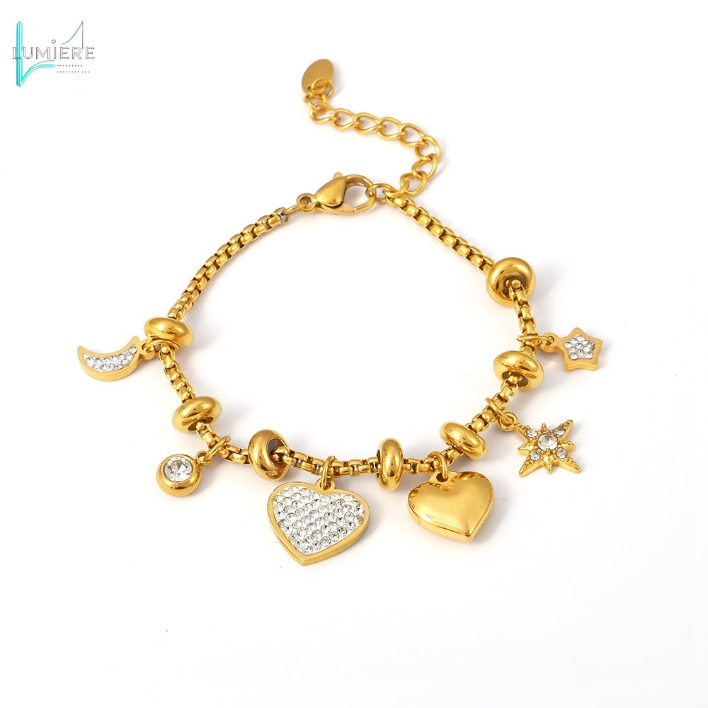 Diamond encrusted bracelet with titanium steel plated with 18k gold