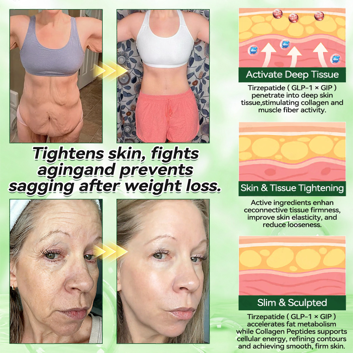 Benefits: Restores skin elasticity, reduces fine lines, prevents skin sagging after weight loss