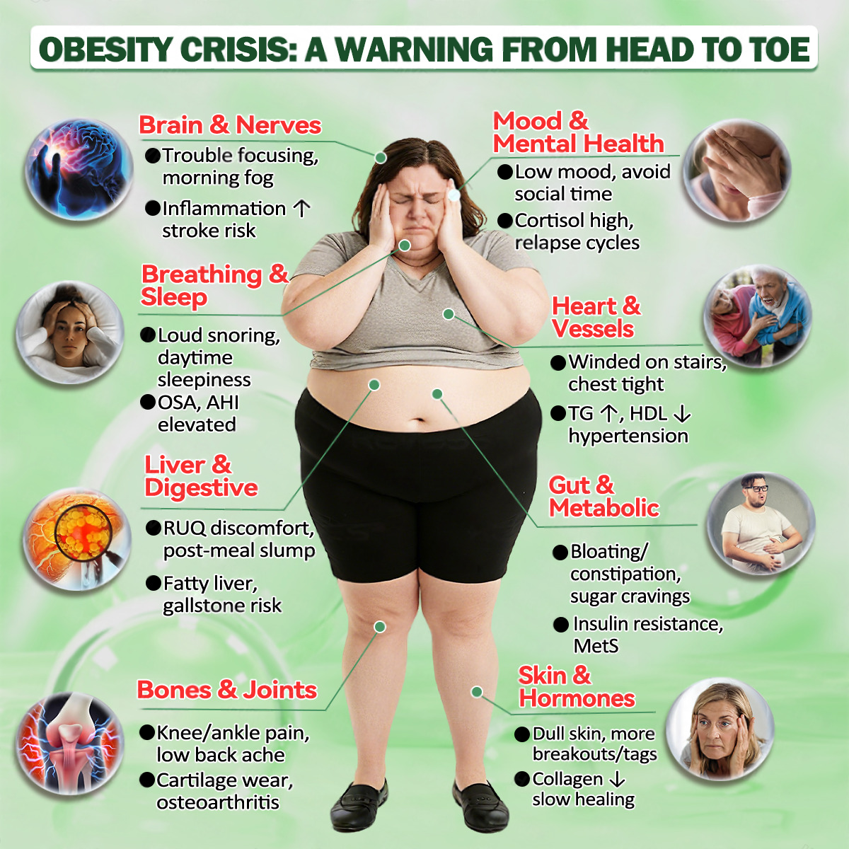 - Cancer risk: Increases cancer risk by 50% compared to people with healthy weight.