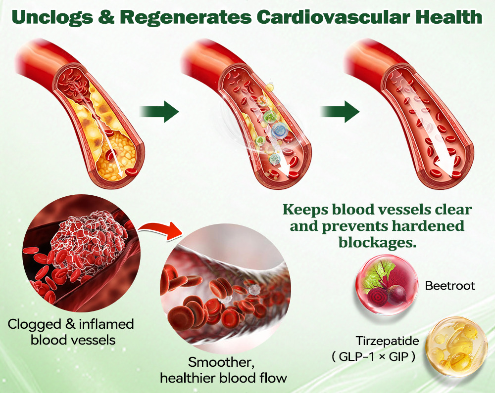 Beetroot powder, as a natural precursor of nitric oxide (NO), enhances NO production in vascular endothelial cells and improves vasodilation. Curcumin, nettle leaf, and coriander seed extracts work together on inflammatory and lipid-metabolism pathways to promote fat metabolism and reduce visceral fat accumulation. This multi-pathway synergy helps maintain younger, more elastic blood vessels, optimize hemodynamics, balance lipid profiles, and strengthen overall cardiovascular resilience.